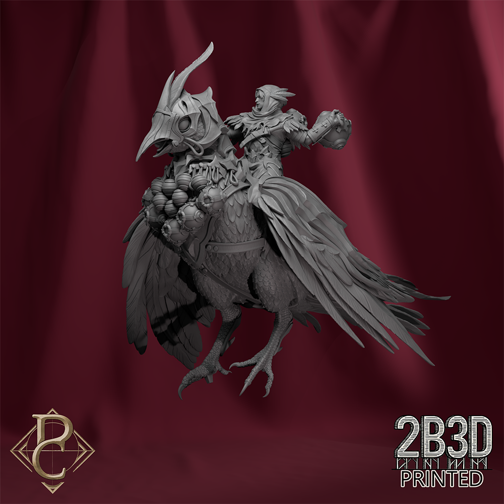 Aerithrian Wind Defender on Emberfinches is a premium 3D printed diorama uniting rider and mount in a breathtaking aerial composition.