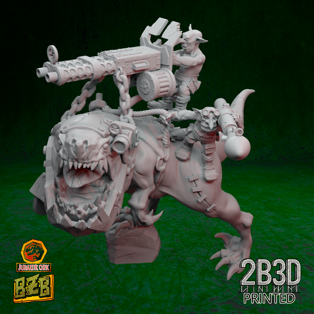 Dakka Squigoraptor turns primal fury into orky firepower. Its machine-gun mount and roaring expression capture a perfect mix of beast and battlefield. Every scale, tooth, and bolt oozes attitude.