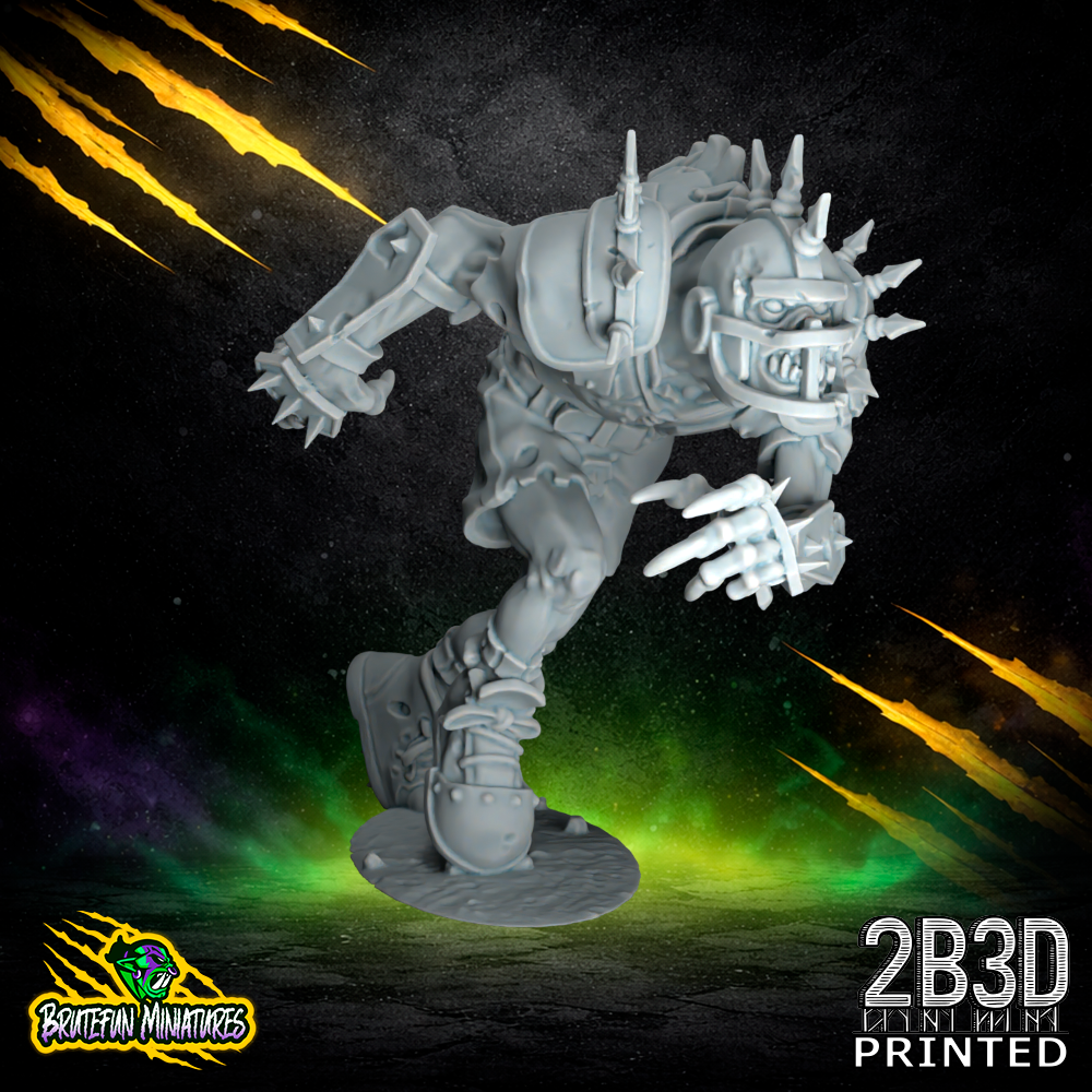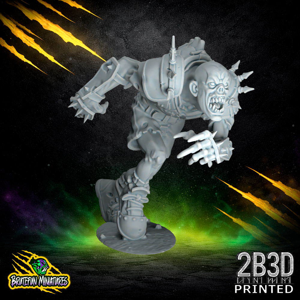 The Ghoul 01 is a 32mm high-detail resin fantasy football miniature from BruteFun Miniatures, professionally printed by 2B3D for the Necromancer’s Horror Team. This sculpt captures a terrifying sense of momentum, featuring a lean, muscular undead physique in a full-sprint pose. The miniature is adorned with spiked armor plates on the shoulders and arms, emphasizing its role as a dangerous and agile player on the pitch. The level of detail in the tattered clothing and snarling facial expression makes it a standout piece for hobbyists.