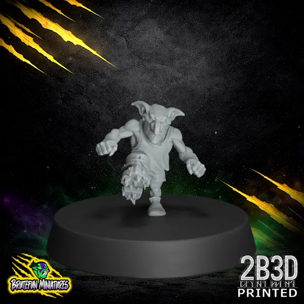 The Black Orc Team Goblin (Sneaking) is a 32mm high-detail resin fantasy football miniature from BruteFun Miniatures, professionally printed by 2B3D for the more “creative” coaches. This model is sculpted in a low-profile, predatory crouch with fingers clawed and ready to trip up an unsuspecting opponent. It features a unique nose ring detail and a heavily spiked helmet, blending the comedic nature of Goblins with the brutal aesthetic of the Black Orc faction. The sharp casting of the resin highlights the intricate textures of the skin and the cold iron of the armor, making it a joy to paint. Add this specialized scout to your 2B3D collection and bring a touch of mischief to your next tabletop match.