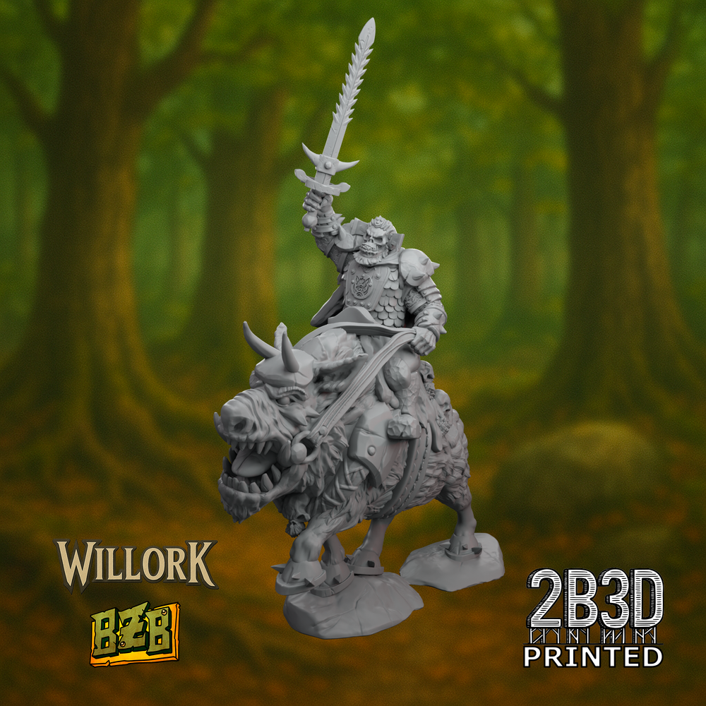 Kael on Boar is pure momentum sculpted in resin. The mount’s rage mirrors its rider’s silence — a partnership forged in chaos and mutual disrespect. Perfect centerpiece for any Waaagh that believes in horsepower and bad manners.