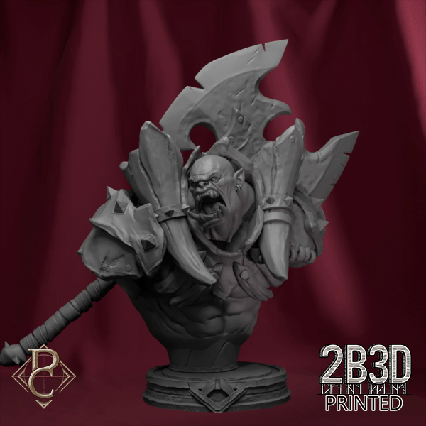 Printed in high-resolution resin with intricate texture and depth, this bust is a striking piece for collectors and painters drawn to heroic and brutal fantasy themes.