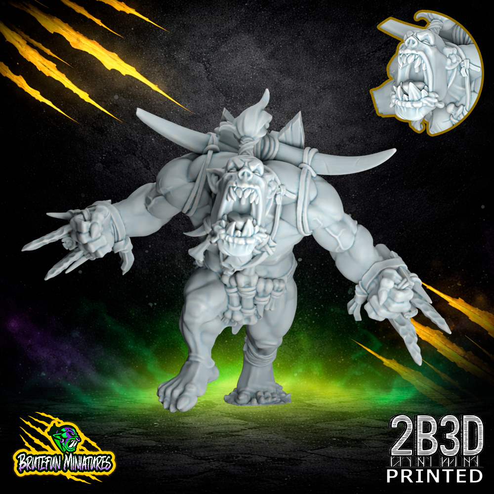 The Savage Orc Blitzer 03 is a 32mm high-detail resin fantasy football miniature from BruteFun Miniatures, professionally printed by 2B3D for the Savage Orcs team. This dynamic sculpt features a powerful warrior in an aggressive mid-lunge pose, capturing the explosive speed of a dedicated blitzer. The model is adorned with intricate tribal elements: stone-bladed gauntlets, bone trophies lashed to the back, and tattered cloth wraps that highlight the incredible muscle definition. To allow for total team customization, this model comes in four distinct variations: Drool with Tusks, Drool without Tusks, No Drool with Tusks, and No Drool without Tusks. Whether you are looking for a feral, saliva-dripping beast or a stoic tribal hunter, this 2B3D boutique print provides the sharp edges and smooth surfaces necessary for high-level painting and tabletop display.