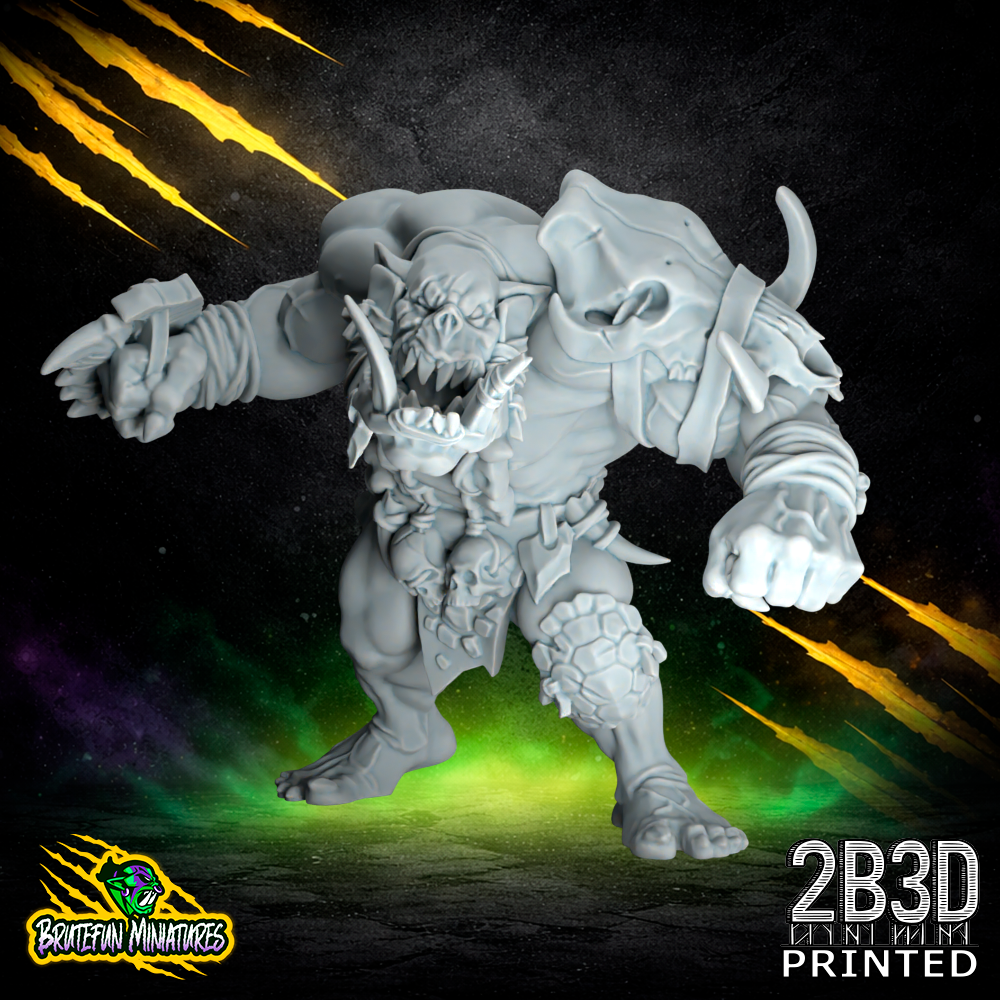 The Savage Orc Brawler 01 is a 32mm high-detail resin fantasy football miniature from BruteFun Miniatures, professionally printed by 2B3D for the Savage Orcs team. This sculpt showcases the sheer physical power of the jungle tribes, featuring an orc in a grounded, ready-to-rumble stance. The character is laden with primitive detail: oversized stone-carved gauntlets with lethal spikes, bone trophies lashed to a heavy back-plate, and tattered leather loincloths. The anatomy is rendered with extreme precision, highlighting bulging muscles and a snarling, tusked visage that captures the feral spirit of the team. As a dedicated brawler, this model is designed to be the immovable object on your line of scrimmage. Expertly produced by 2B3D, this miniature provides a premium hobby experience for those looking to paint intricate textures of stone, bone, and weathered skin.