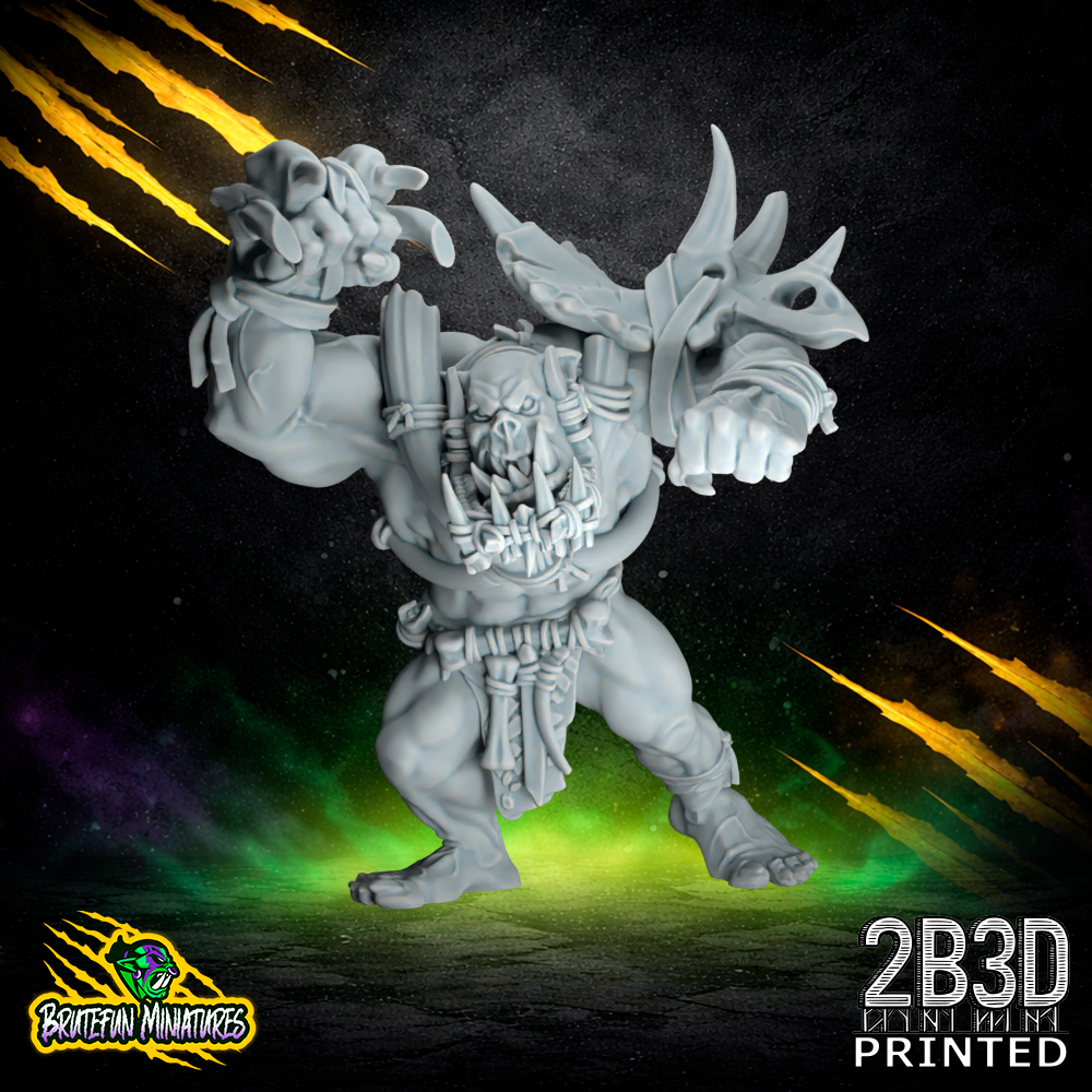 The Savage Orc Brawler 04 is a 32mm high-detail resin tabletop miniature from BruteFun Miniatures, professionally printed by 2B3D for use in Savage Orcs fantasy football teams. This model features a massive, muscular orc in a low-center-of-gravity stance, perfectly suited for a player dedicated to holding the line and delivering bone-crunching blocks. The sculpt is rich with tribal iconography, including heavy stone-knapped gauntlets with primitive spikes, tattered leather wraps, and a large bone trophy lashed to the back. To provide visual variety within your roster, this model is available in two distinct variations: one featuring a protective bone Jaw guard and a No Jaw version that highlights the orc’s fierce facial features. Whether you are a competitive gamer or a dedicated miniature painter, this 2B3D boutique print offers the crisp detail and premium quality required to bring the jungle fury to your next match.