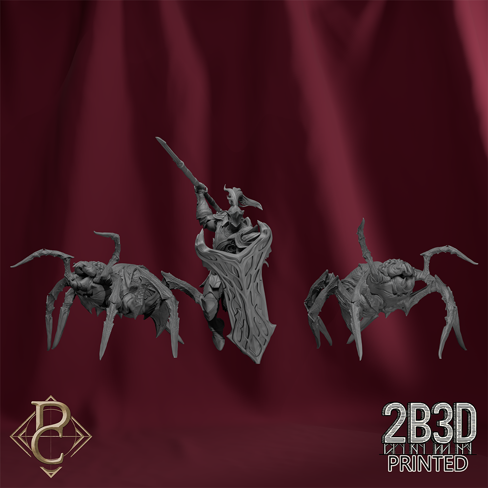 Riteris Spiderbrood and Spiders is a premium 3D printed miniature set depicting the cursed warlord of Shadowhelm and his monstrous kin.