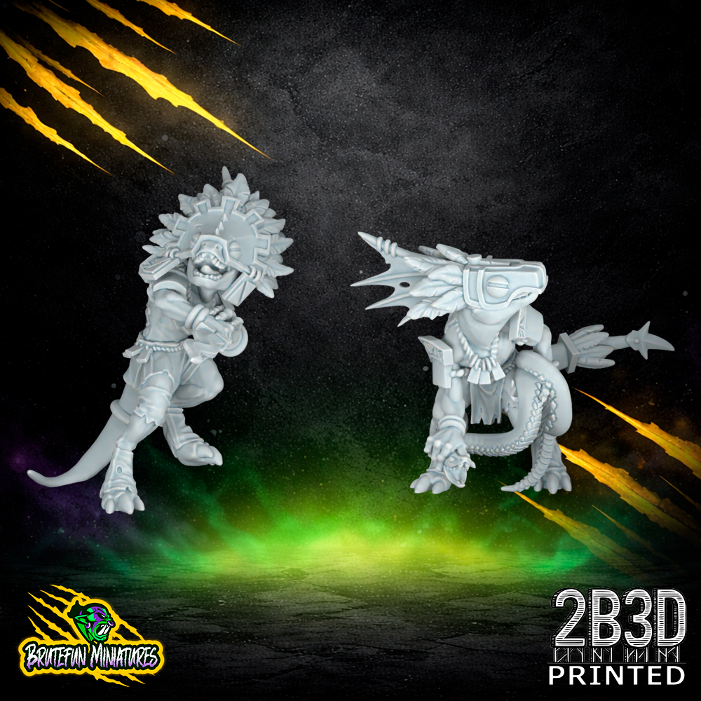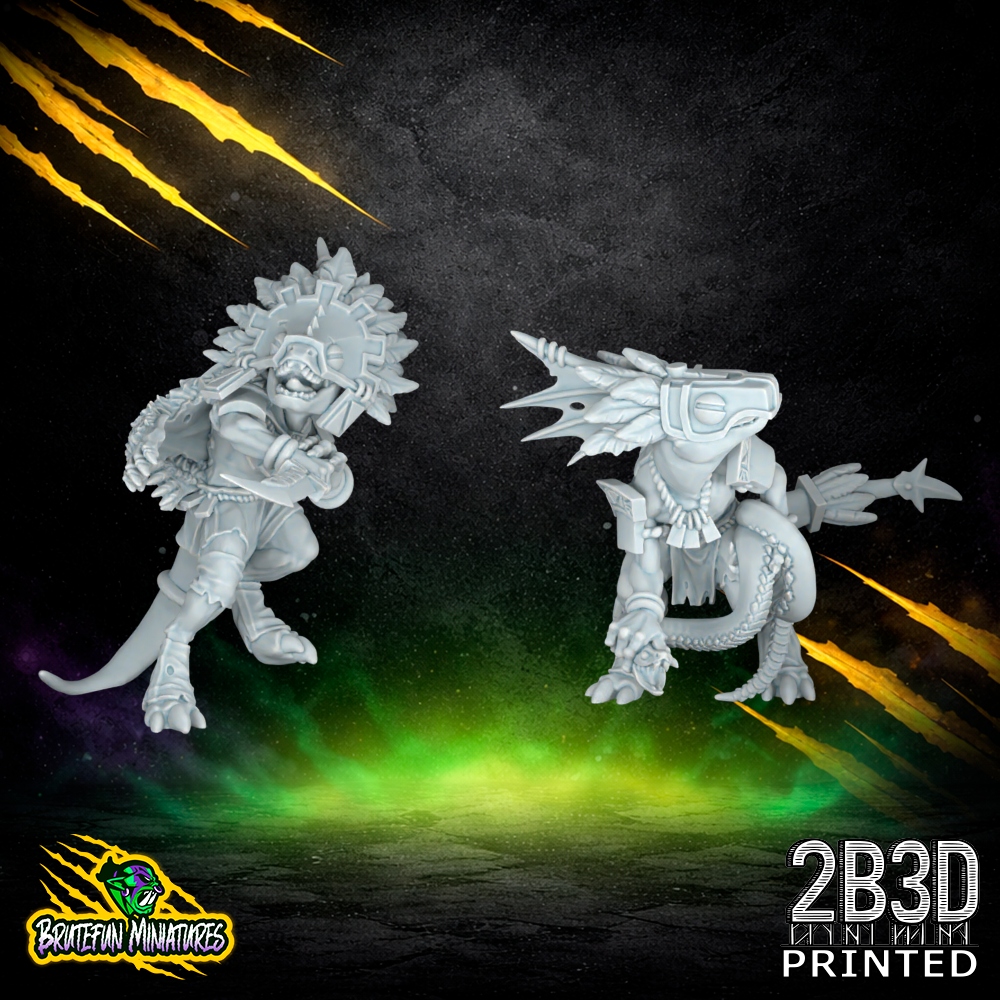 The Skink Star Player is a 32mm high-detail resin fantasy football miniature from BruteFun Miniatures, professionally printed by 2B3D for lizard-themed teams and wargaming enthusiasts. This agile scout is captured in a highly dynamic leaping pose, emphasizing the speed and dexterity required to weave through enemy lines. The sculpt features intricate details such as textured scales, a magnificent feathered headdress, and ritualistic bangles. Available in multiple variations, you can choose between different mask styles (Full Skull, Half Skull, or Wood) and armor configurations to perfectly match your team’s aesthetic. Printed with premium resin by 2B3D, this model offers crisp lines that make it an exceptional choice for painting and display. Whether you are aiming for a touchdown or building a stunning collection, this Skink Star brings unmatched character to your tabletop.