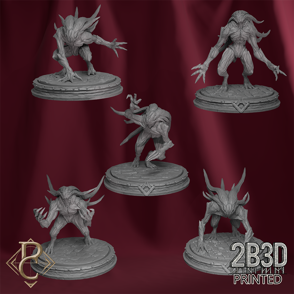 The Hunter Pack is a premium 3D printed miniature set representing the Soul Hunters — the fiendish enforcers of Azghorath’s dominion. Each creature embodies a fragment of the abyssal hive mind, moving with eerie synchronization to claim the souls of the damned.