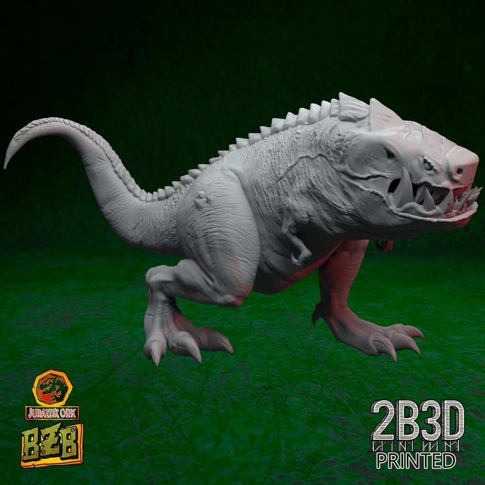 Squigosaurus is the ultimate monster of the Jurazzik line — a colossal beast bred from too much fungus, radiation, and bad science. Its jaw could bite a tank in half, and it probably has.