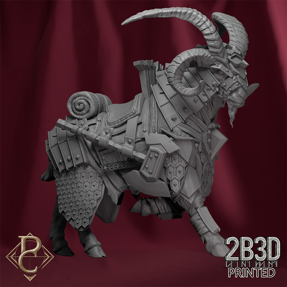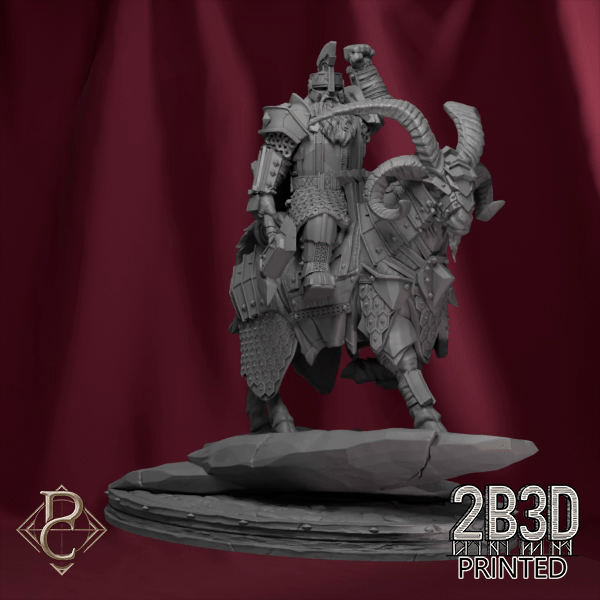 Stormkeeper Torbjorn on Goat depicts the indomitable dwarven guardian mounted upon his steadfast mountain steed, braving the fury of the skies.
