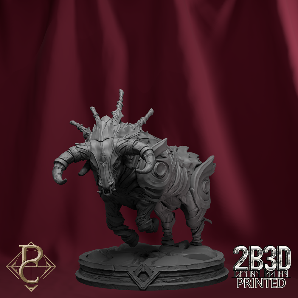 The Bull is a high-detail 3D printed miniature capturing the fury and might of a mythical creature bound to chaos and flame.