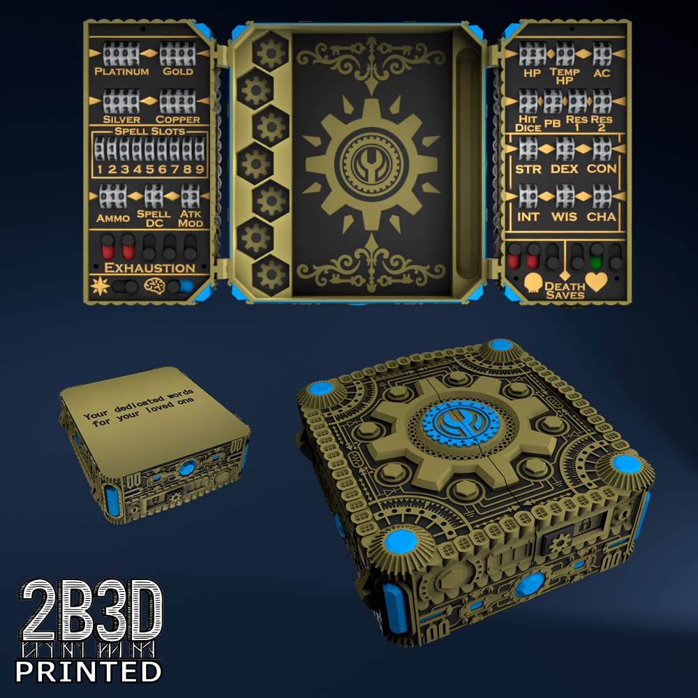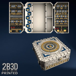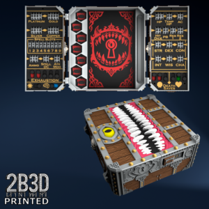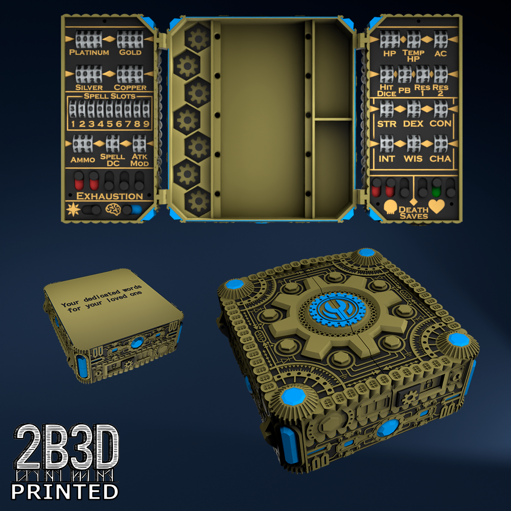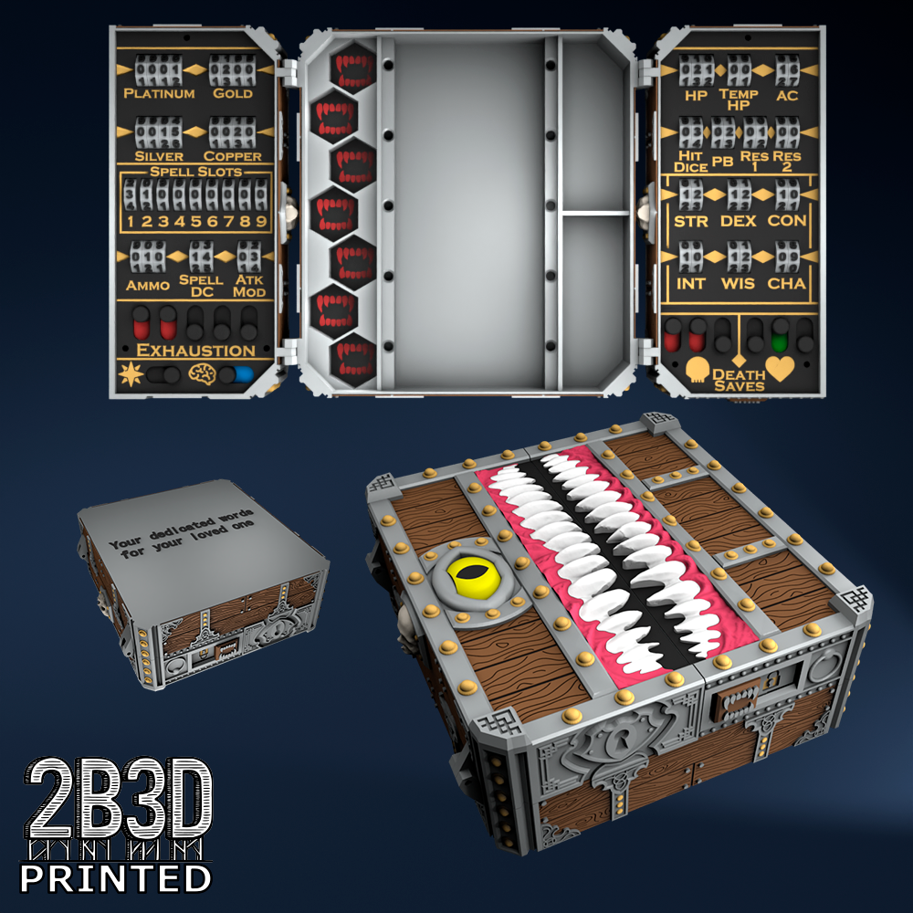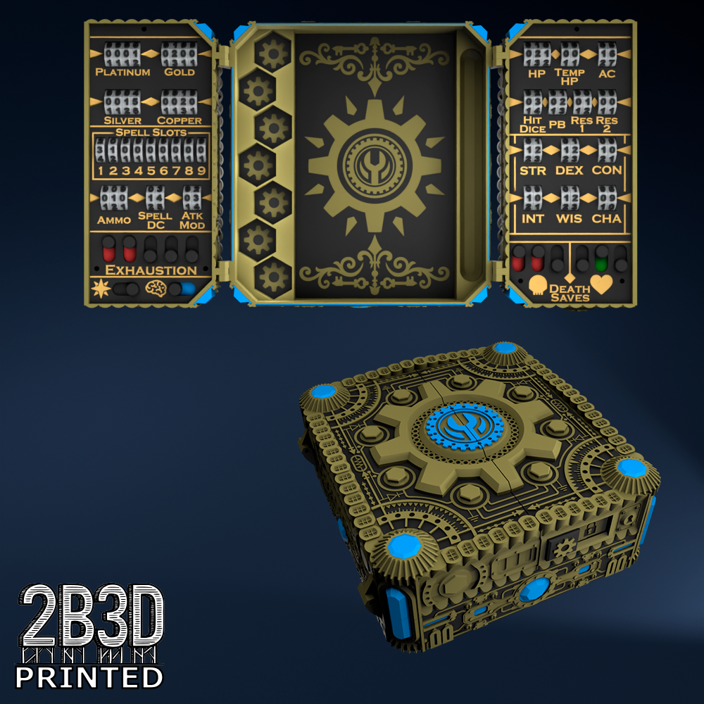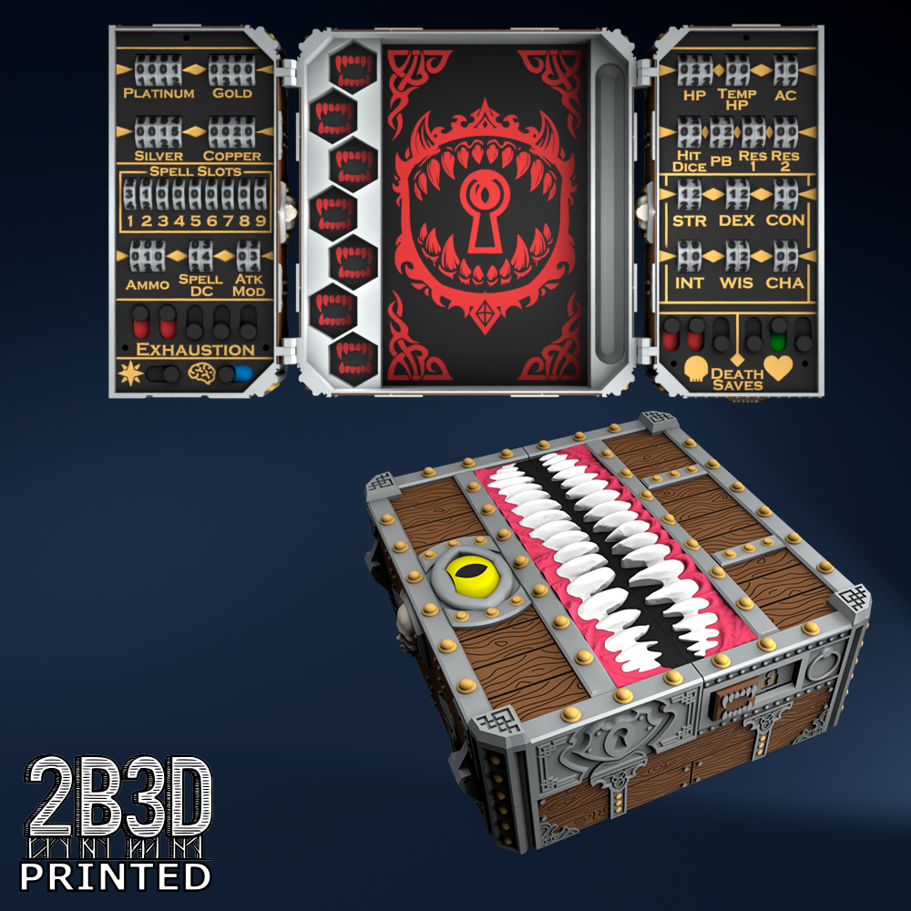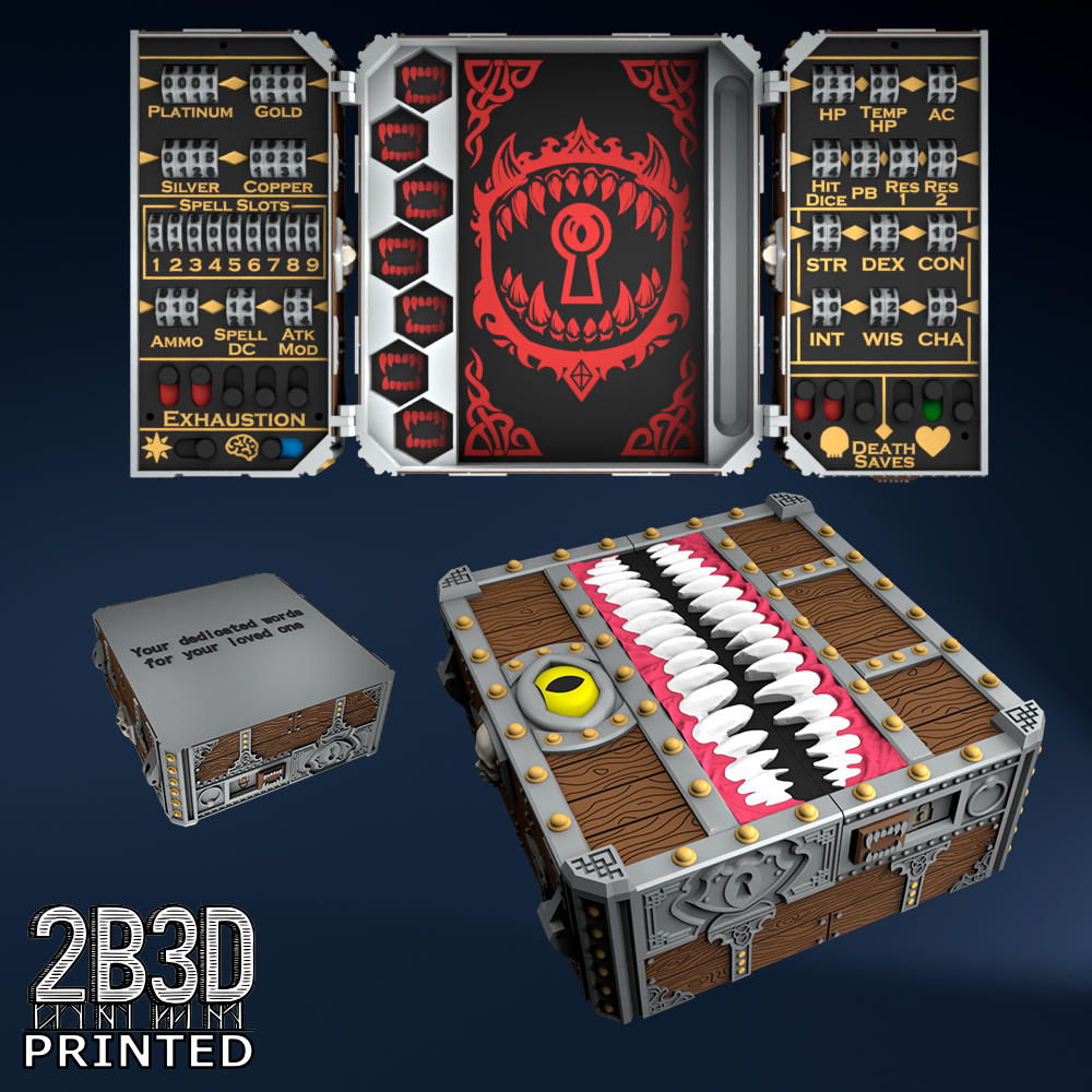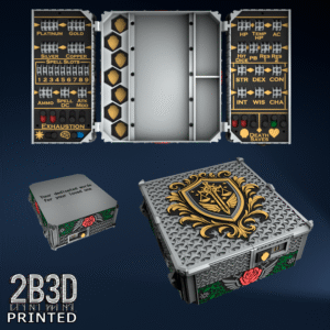 The Chest of Superior Tracking is a beautifully designed, fully functional D&D 5E accessory. It might store your dice, notebook (A6), and pen — and more importantly, it brings your character to life through immersive physical stat tracking.