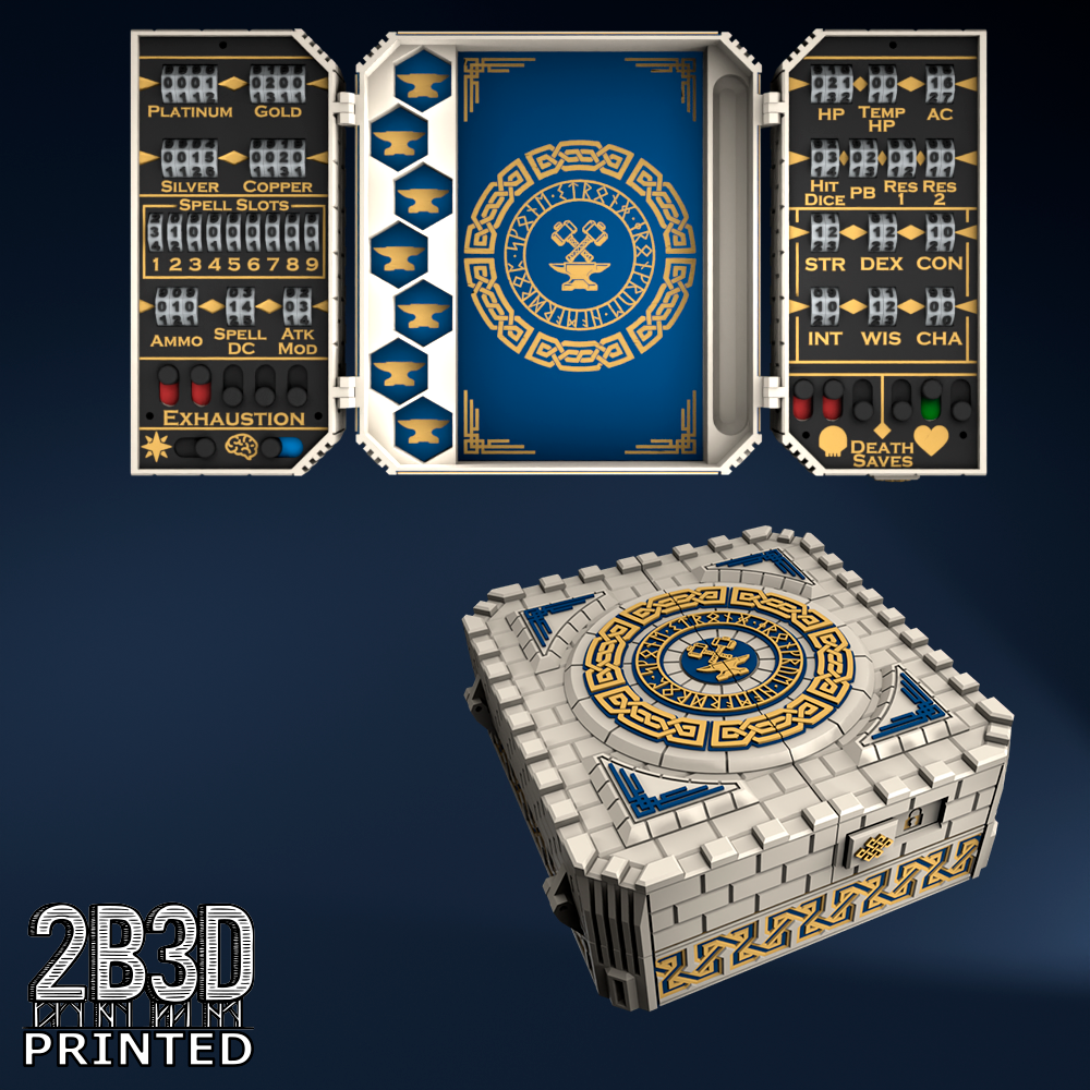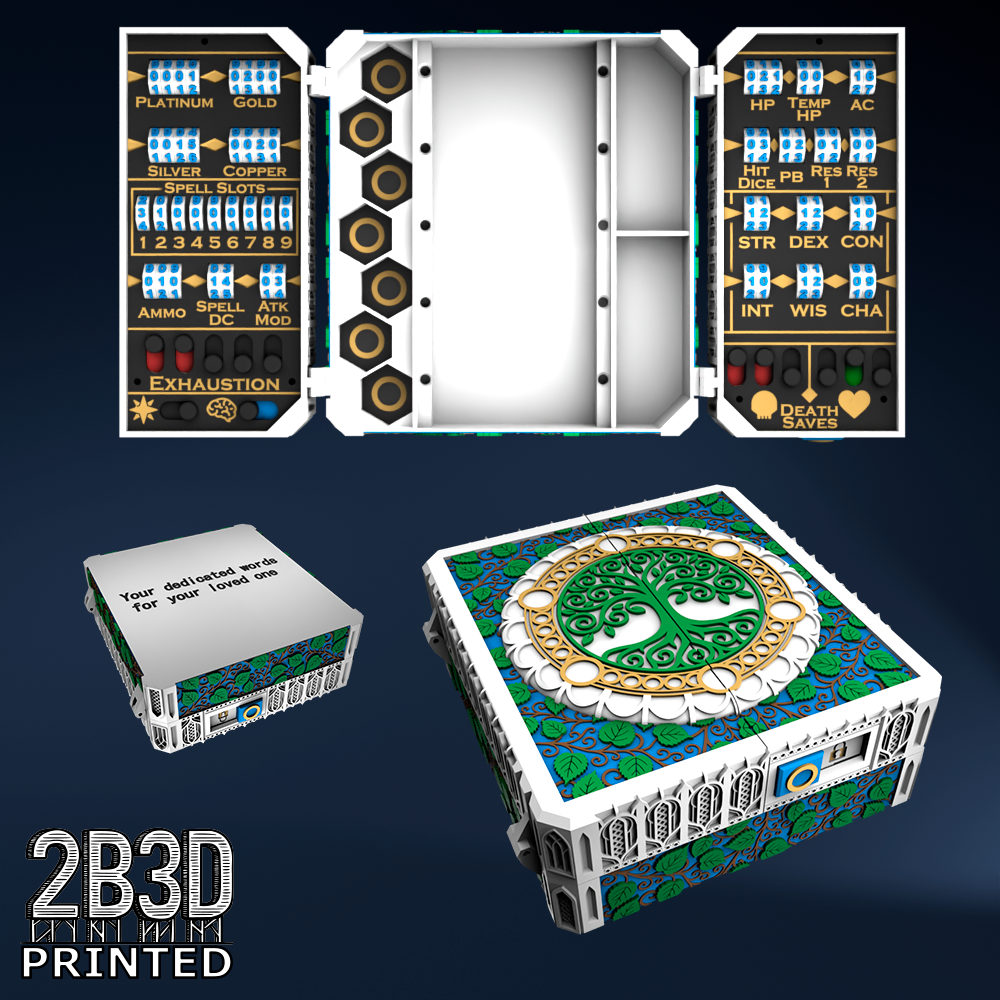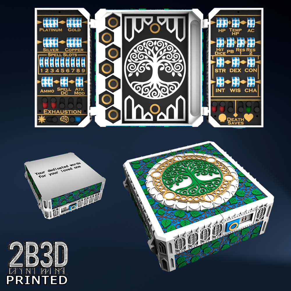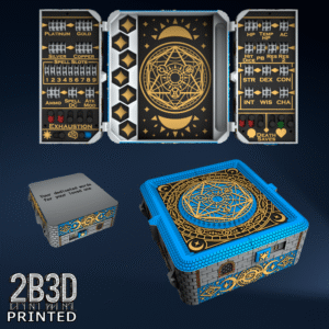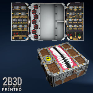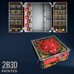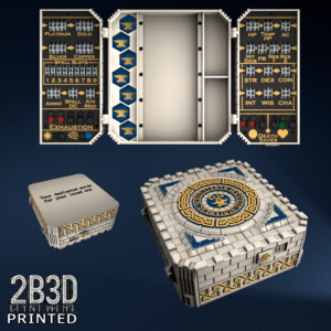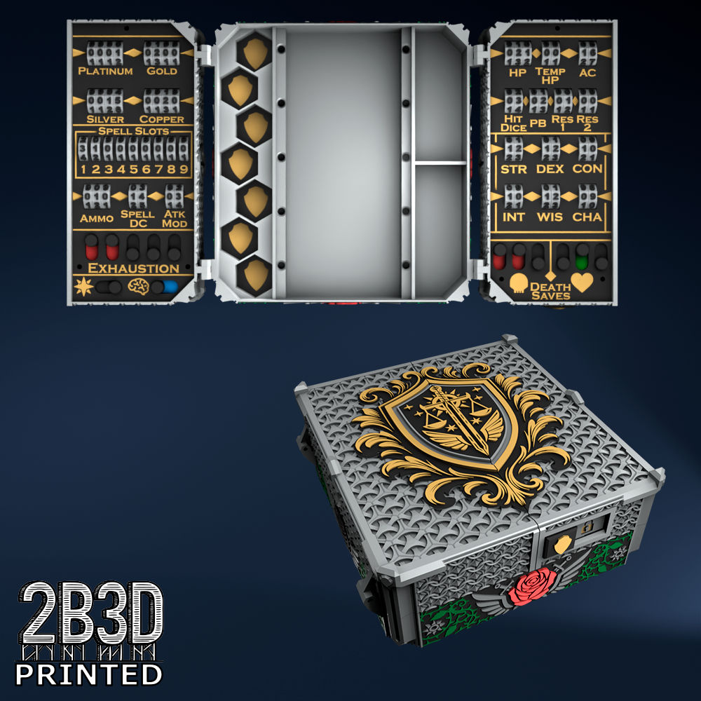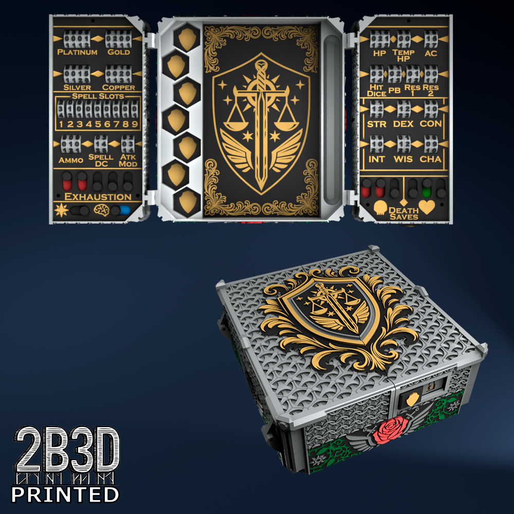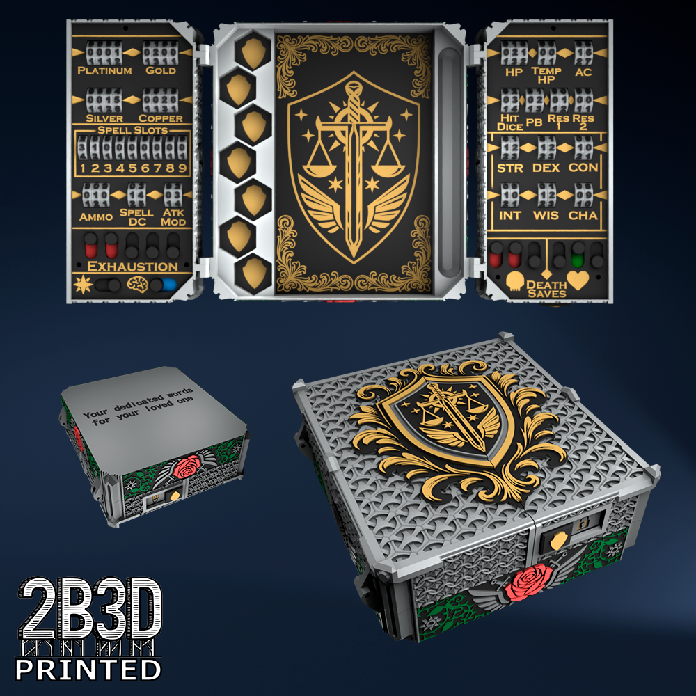 The Chest of Superior Tracking is a beautifully designed, fully functional D&D 5E accessory. It might store your dice, notebook (A6), and pen — and more importantly, it brings your character to life through immersive physical stat tracking.