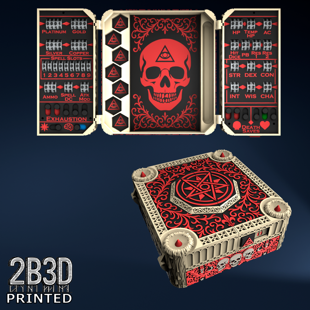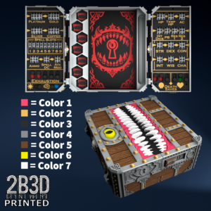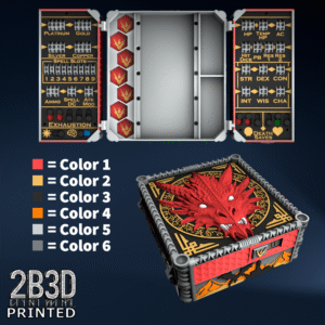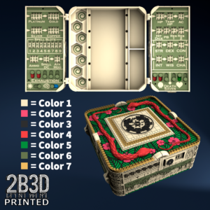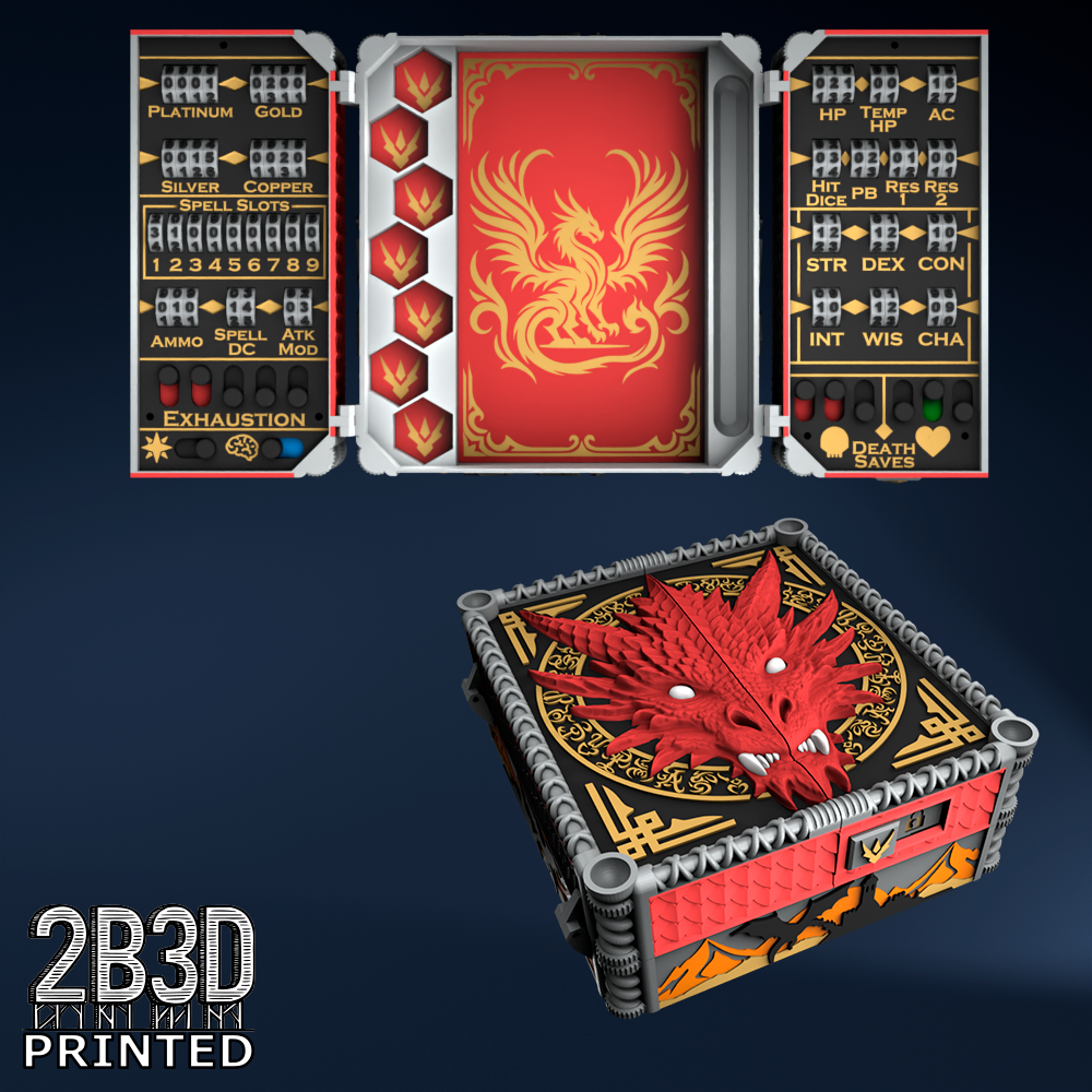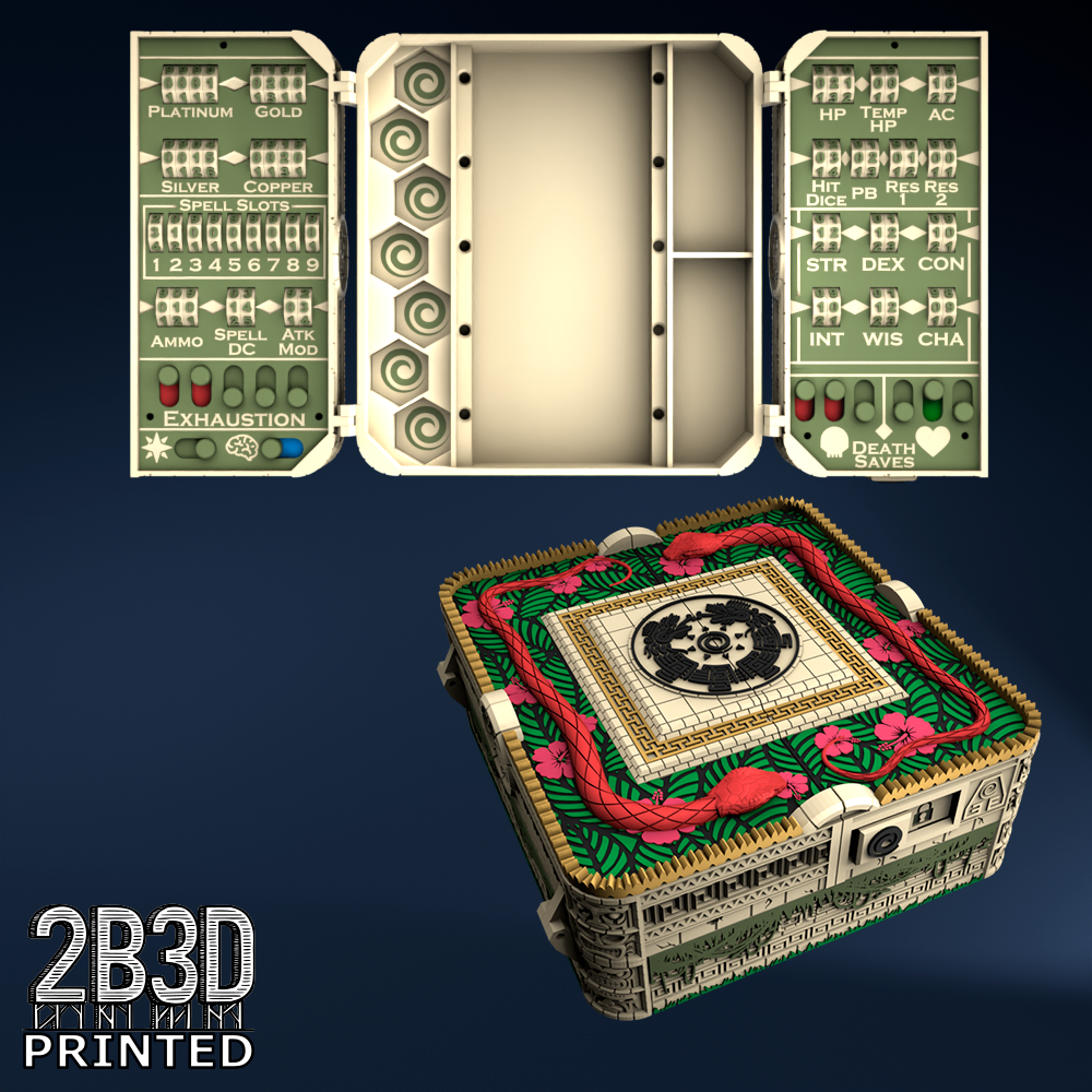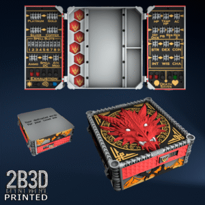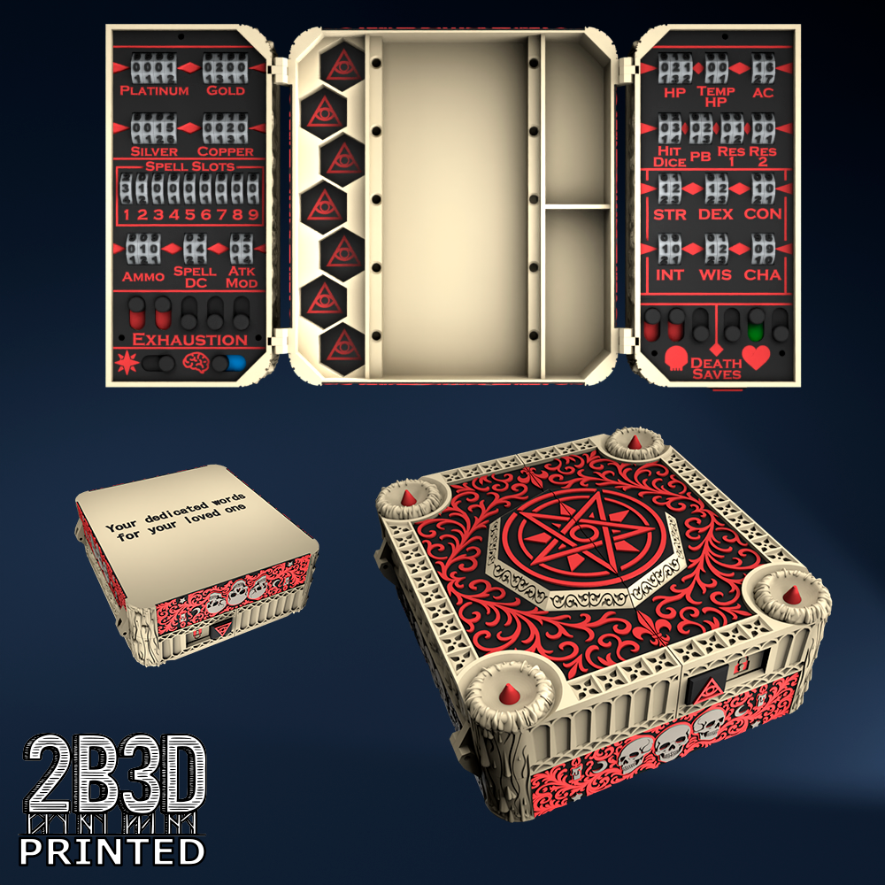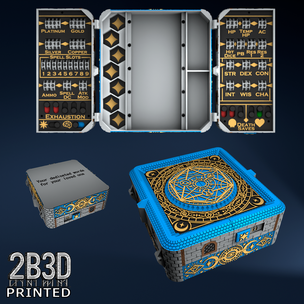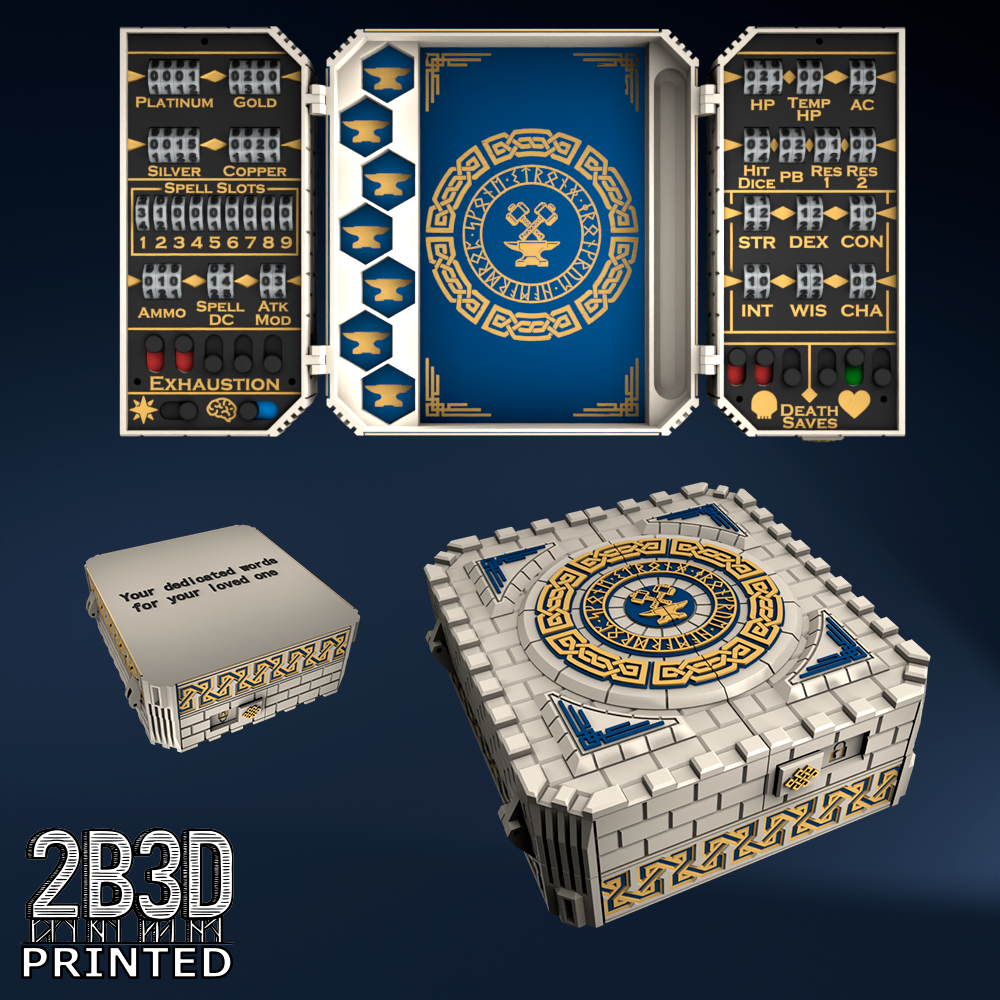 The Chest of Superior Tracking is a beautifully designed, fully functional D&D 5E accessory. It might store your dice, notebook (A6), and pen — and more importantly, it brings your character to life through immersive physical stat tracking.