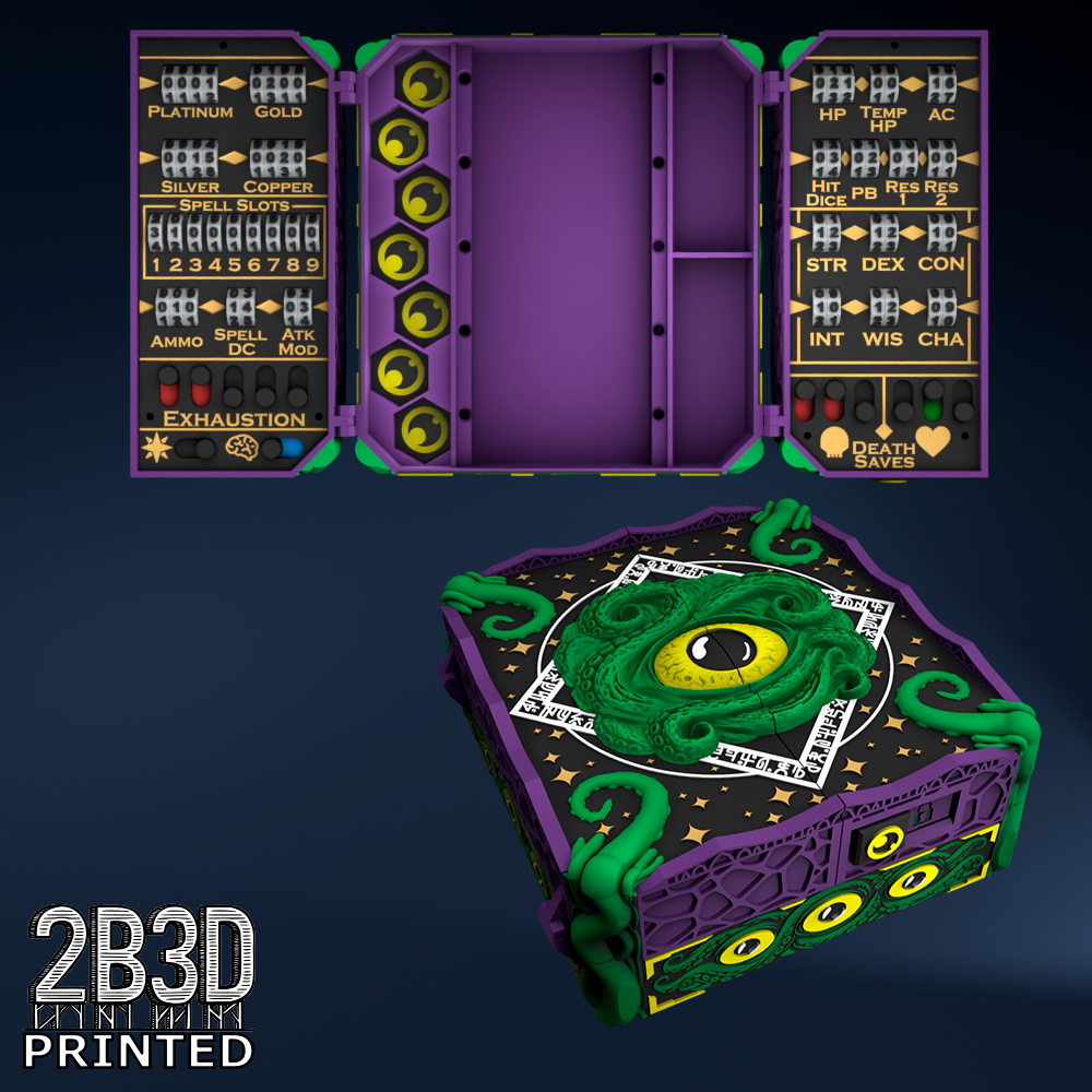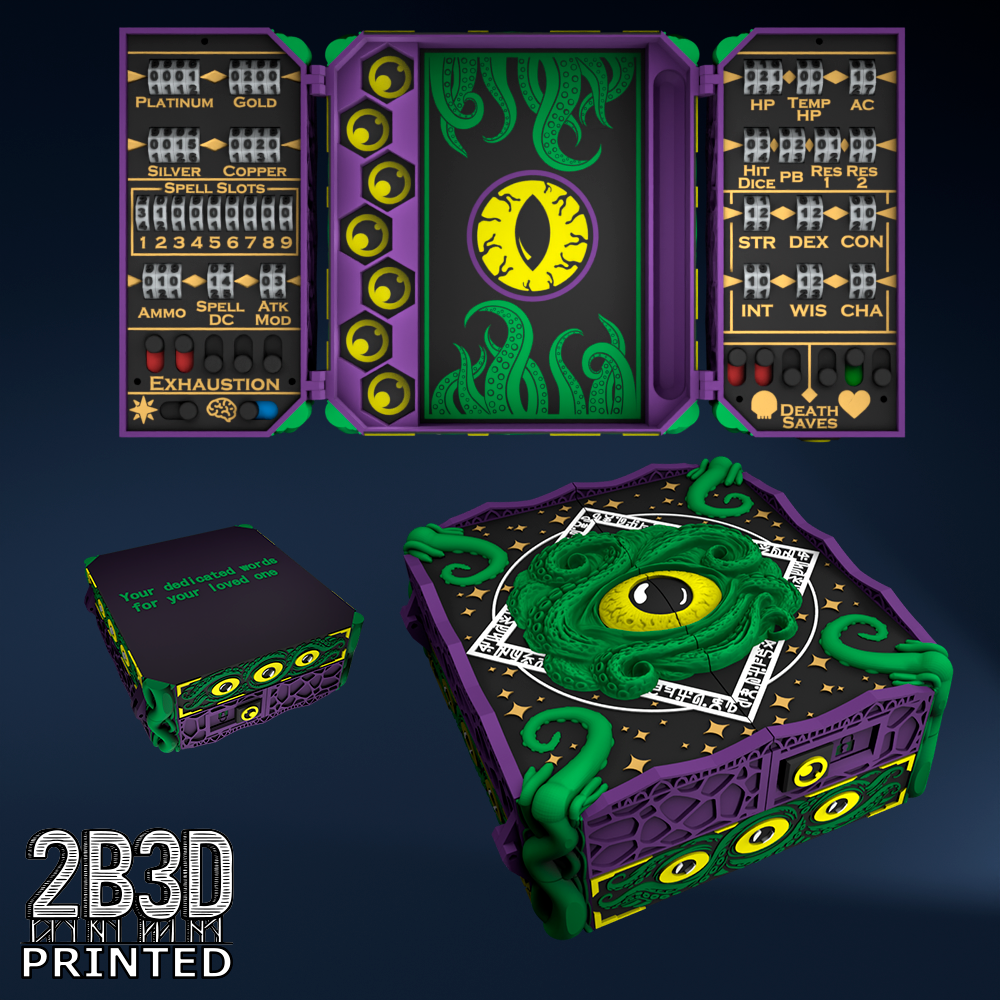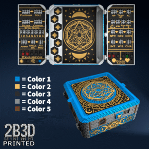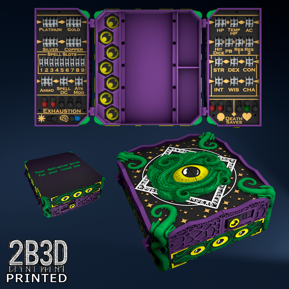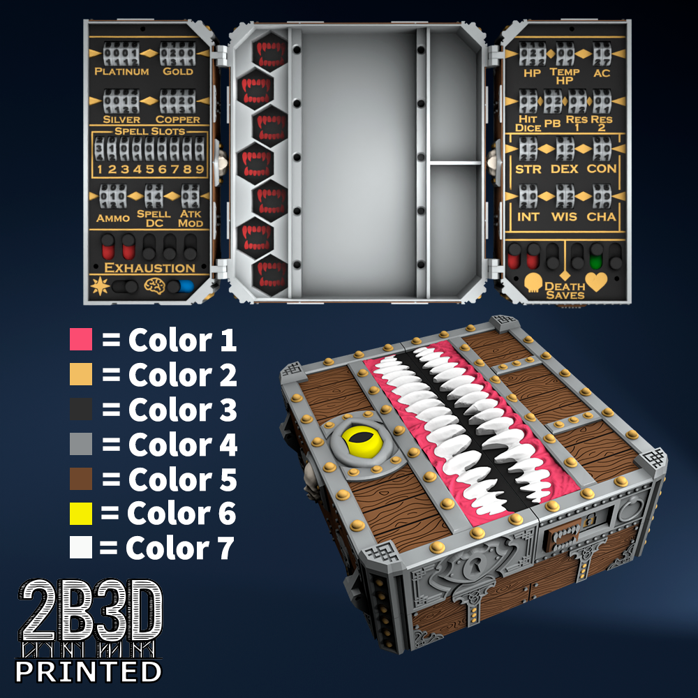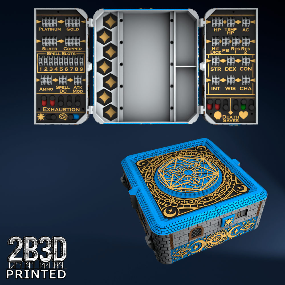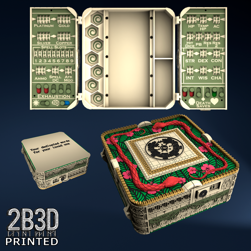 The Chest of Superior Tracking is a beautifully designed, fully functional D&D 5E accessory. It might store your dice, notebook (A6), and pen — and more importantly, it brings your character to life through immersive physical stat tracking.