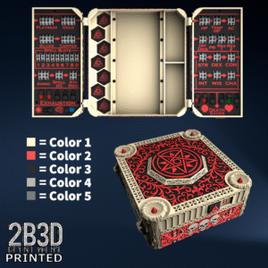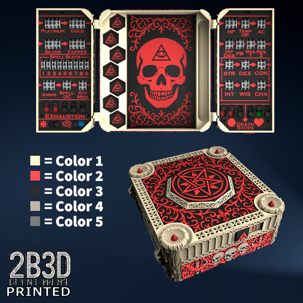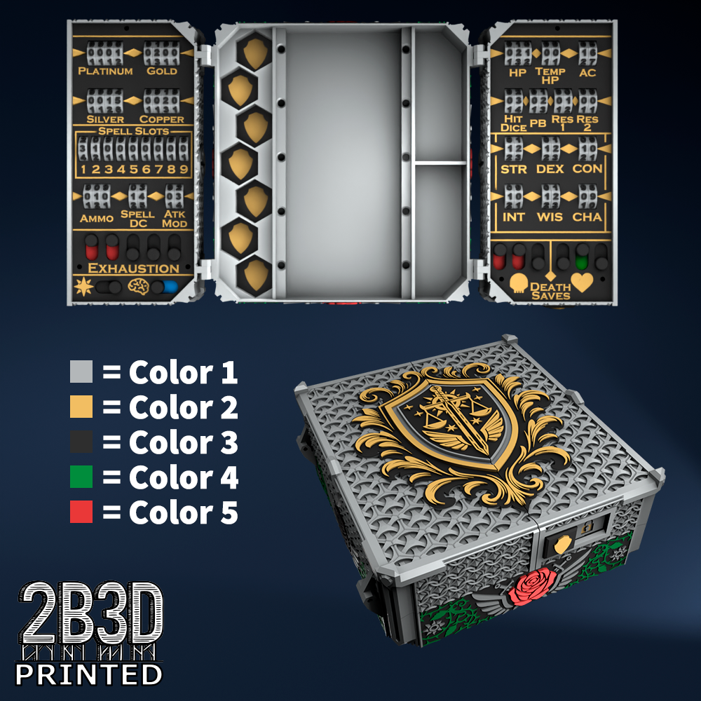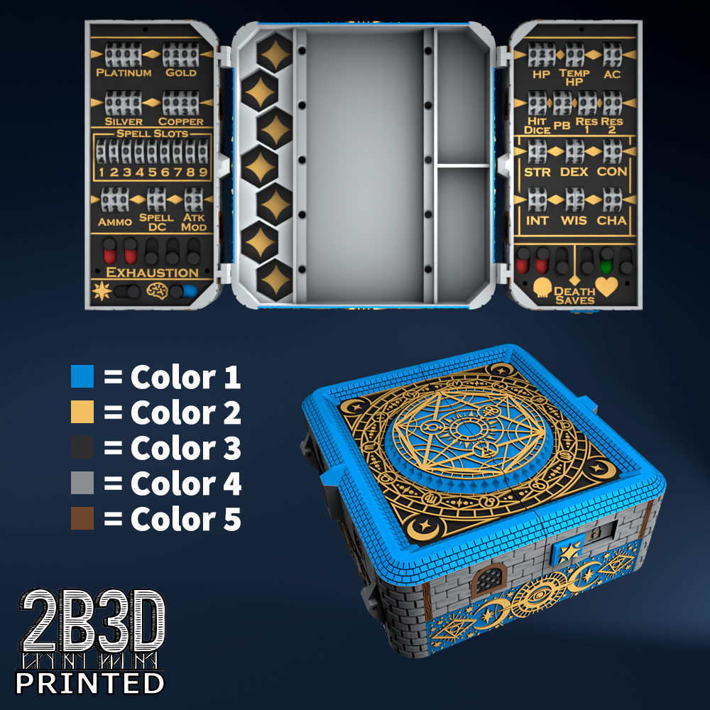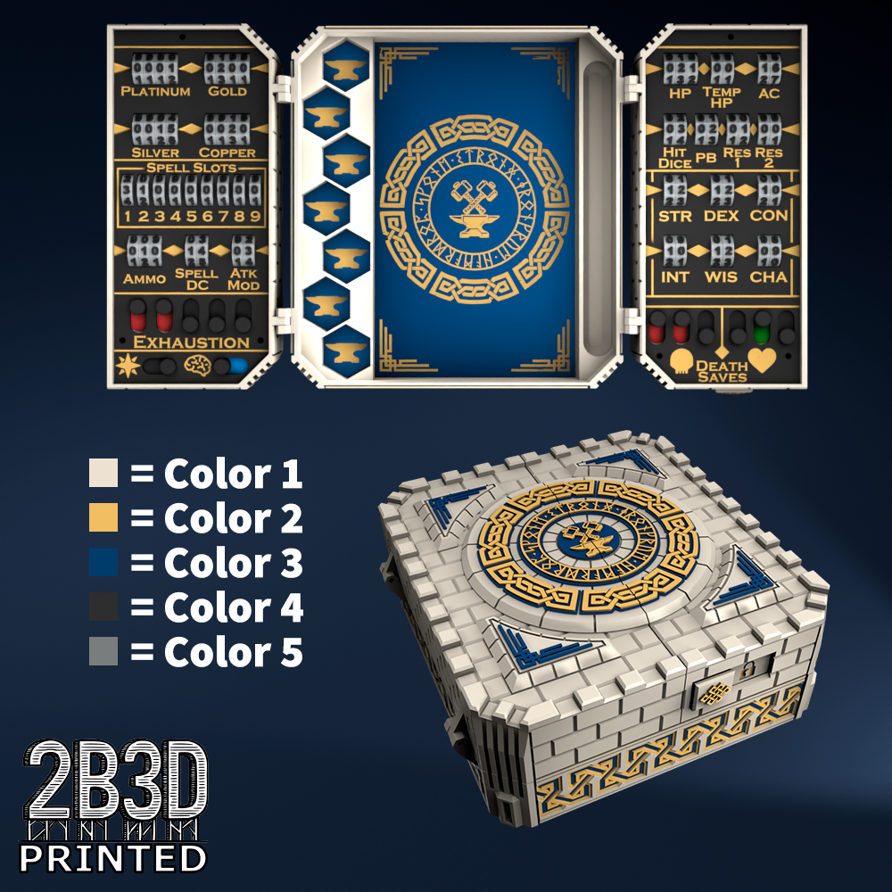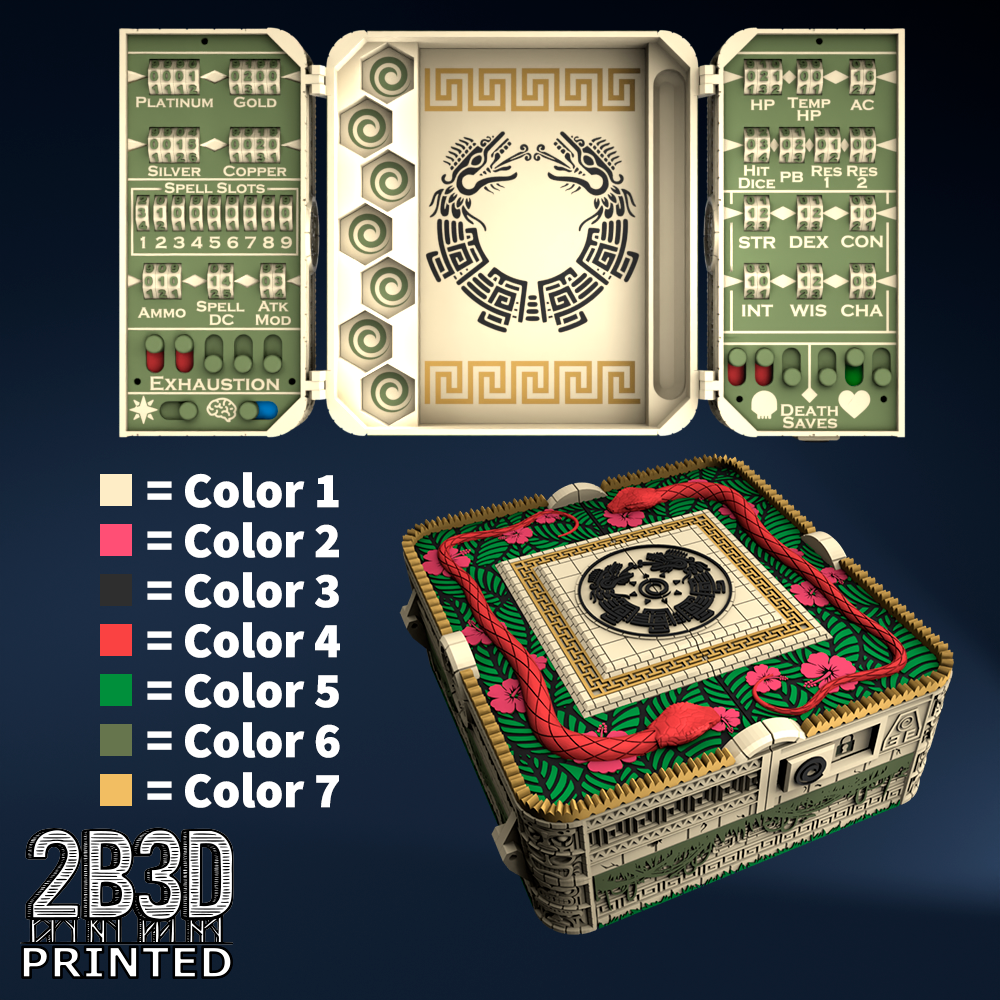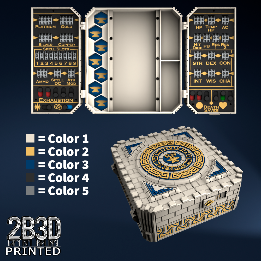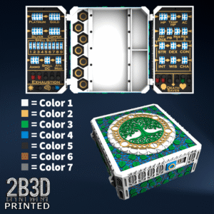 The Chest of Superior Tracking is a beautifully designed, fully functional D&D 5E accessory. It might store your dice, notebook (A6), and pen — and more importantly, it brings your character to life through immersive physical stat tracking.