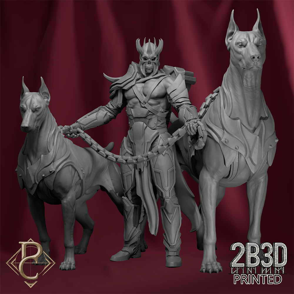Warden Blackhelm and Hounds is a premium 3D printed miniature depicting a cursed knight bound to his loyal beasts, eternal enforcers of divine retribution.
