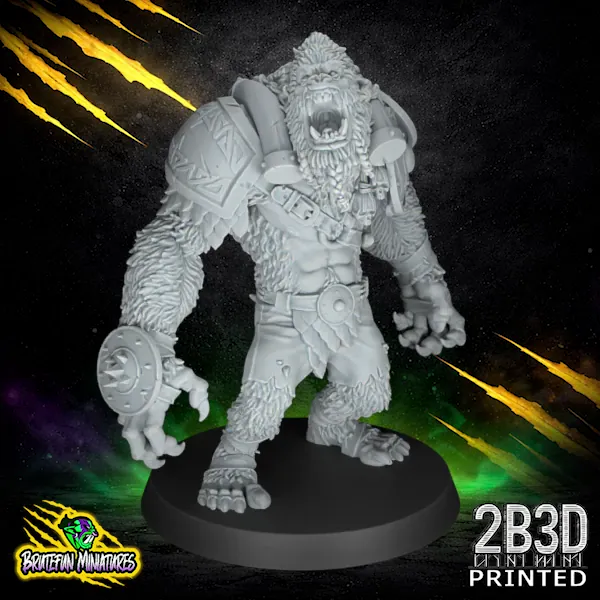 The Yeti is a 32mm high-detail resin fantasy football miniature from BruteFun Miniatures, professionally printed by 2B3D for Norse-themed teams and icy environments. This massive “Big Guy” sculpt features incredible fur textures, a primal screaming facial expression, and sports-ready armor including a spiked fist guard and heavy shoulder pads. The dynamic, forward-leaning pose captures the raw power of a creature designed to break lines and intimidate opponents on the pitch.